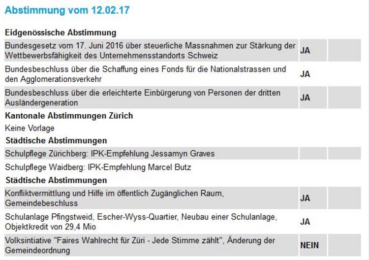 Standaktion in Höngg zu den Abstimmungen vom 12. Februar 2017
